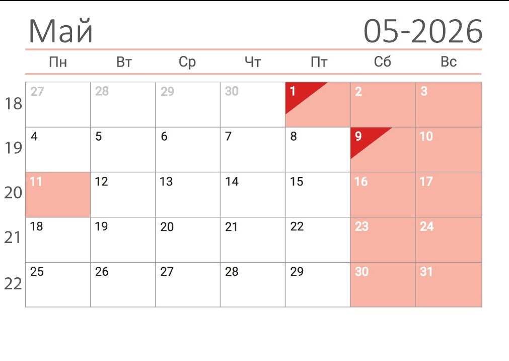 πΉΠ 2026 Π³ΠΎΠ΄Ρ Π½Π΅ΡΠ°Π±ΠΎΡΠΈΠΌΠΈ Π΄Π½ΡΠΌΠΈ Π½Π° ΠΌΠ°ΠΉΡΠΊΠΈΠ΅ ΠΏΡΠ°Π·Π΄Π½ΠΈΠΊΠΈ Π±ΡΠ΄ΡΡ 1-3 ΠΌΠ°Ρ (ΠΏΡΡΠ½ΠΈΡΠ° β Π²ΠΎΡΠΊΡΠ΅ΡΠ΅Π½ΡΠ΅) ΠΈ 9-11 ΠΌΠ°Ρ (ΡΡΠ±Π±ΠΎΡΠ° β ΠΏΠΎΠ½Π΅Π΄Π΅Π»ΡΠ½ΠΈΠΊ), Π² ΠΎΠ±ΡΠ΅ΠΉ ΡΠ»ΠΎΠΆΠ½ΠΎΡΡΠΈ β 6 Π΄Π½Π΅ΠΉ. πΉ1 ΠΈ 9 ΠΌΠ°Ρ Π·Π°ΡΠΈΠΊΡΠΈΡΠΎΠ²Π°Π½Ρ ΠΊΠ°ΠΊ ΠΏΡΠ°Π·Π΄Π½ΠΈΡΠ½ΡΠ΅ Π΄Π½ΠΈ, Π² ΠΎΡΡΠ°Π»ΡΠ½ΠΎΠΌ Π²ΡΠ΅ Π·Π°Π²ΠΈΡΠΈΡ ΠΎΡ ΡΠΈΡΡΠ΅ΠΌΡ ΠΏΠ΅ΡΠ΅Π½ΠΎΡΠ° Π²ΡΡ