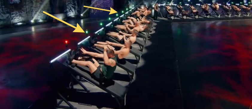 Пресс качать сложно всем, но особо тяжеловесам и девушкам. Надо дотягиваться до зелёной кнопки обязательно. Не дотянулся, не нажал, уже вылетаешь. Торнике вылетел. За ним Яшанькин, к своему удивлению и огорчению. Потом Земляков, то есть тяжи ушли первыми, девушки держатся.
