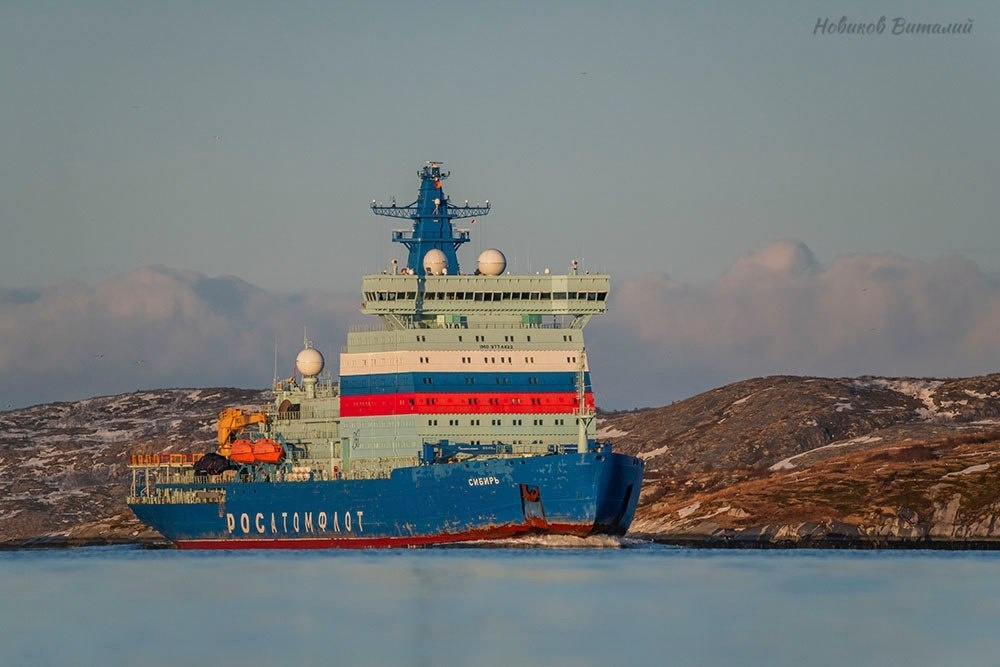 Атомный ледокол «Сибирь» на пути в порт приписки Мурманск после работы в акватории Финского залива.