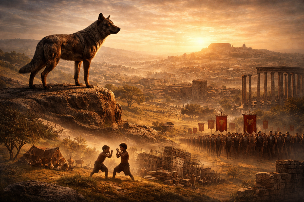Но любая великая история Рима несёт в себе и тень. Миф о волчице ведёт не только к основанию города, но и к братоубийству. Это одна из самых страшных особенностей римского начала: цивилизация возникает не просто из спасения, а из конфликта. Ромул и Рем спасены вместе, но город в итоге получает имя только одного из них. Значит, у истока римского величия лежит не идиллия братства, а трагедия выбора, соперничества и победы через смерть ближнего.