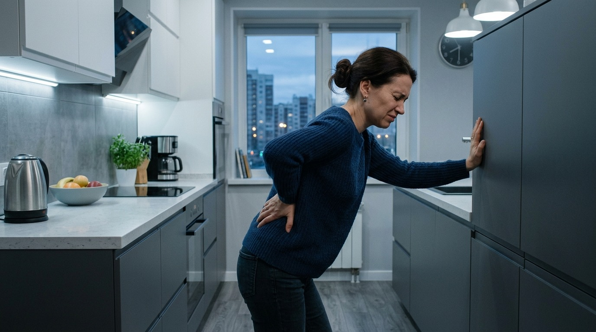 Вечер после рабочего дня. Единственный звук в пустой квартире – монотонное, почти издевательское тиканье настенных часов на кухне. Ирина стоит прямо на прислонившись спиной к фасаду кухонного шкафа. Она не чувствует холода дерева. Всё её внимание приковано к тому, как в поясницу, будто калёный гвоздь, впивается острая, пульсирующая боль. Ирина пытается сделать вдох, но тело словно превратилось в неповоротливый бетонный столб.