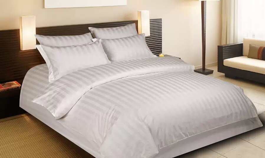 Постельное бельё из страйп‑сатина — это воплощение роскоши и комфорта, как в лучших пятизвёздочных отелях. Изделие создано из 100 % хлопка высшего сорта, что гарантирует гипоаллергенность, отличную терморегуляцию и воздухопроницаемость: кожа «дышит» во время сна, а натуральный состав безопасен даже для чувствительной кожи и детей. Плотность ткани 140 г/м² обеспечивает прочность и долговечность — бельё выдерживает множество стирок без потери формы и цвета, сохраняя безупречный вид на годы. Материал прошёл мерсеризацию: эта специальная обработка хлопковых волокон повышает прочность ткани, придаёт благородный шелковистый блеск, улучшает стойкость цвета (ткань не выцветает и не линяет) и делает поверхность более гладкой и приятной на ощупь. Дополнительно ткань обработана по технологии Air Jet — это уплотняет структуру полотна, снижает ворсистость, усиливает износостойкость и помогает сохранить гладкость и шелковистость даже после многократных стирок. Отличительная черта страйп‑сатина — эле