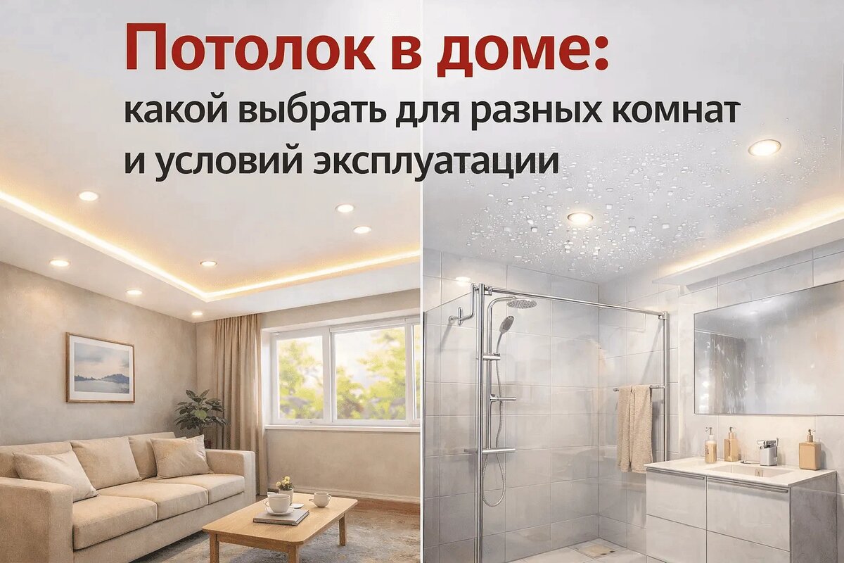 перепадами температуры, влажными зонами и сложной инженерией под потолком. Поэтому хороший потолок в доме нельзя выбирать по одному признаку, например