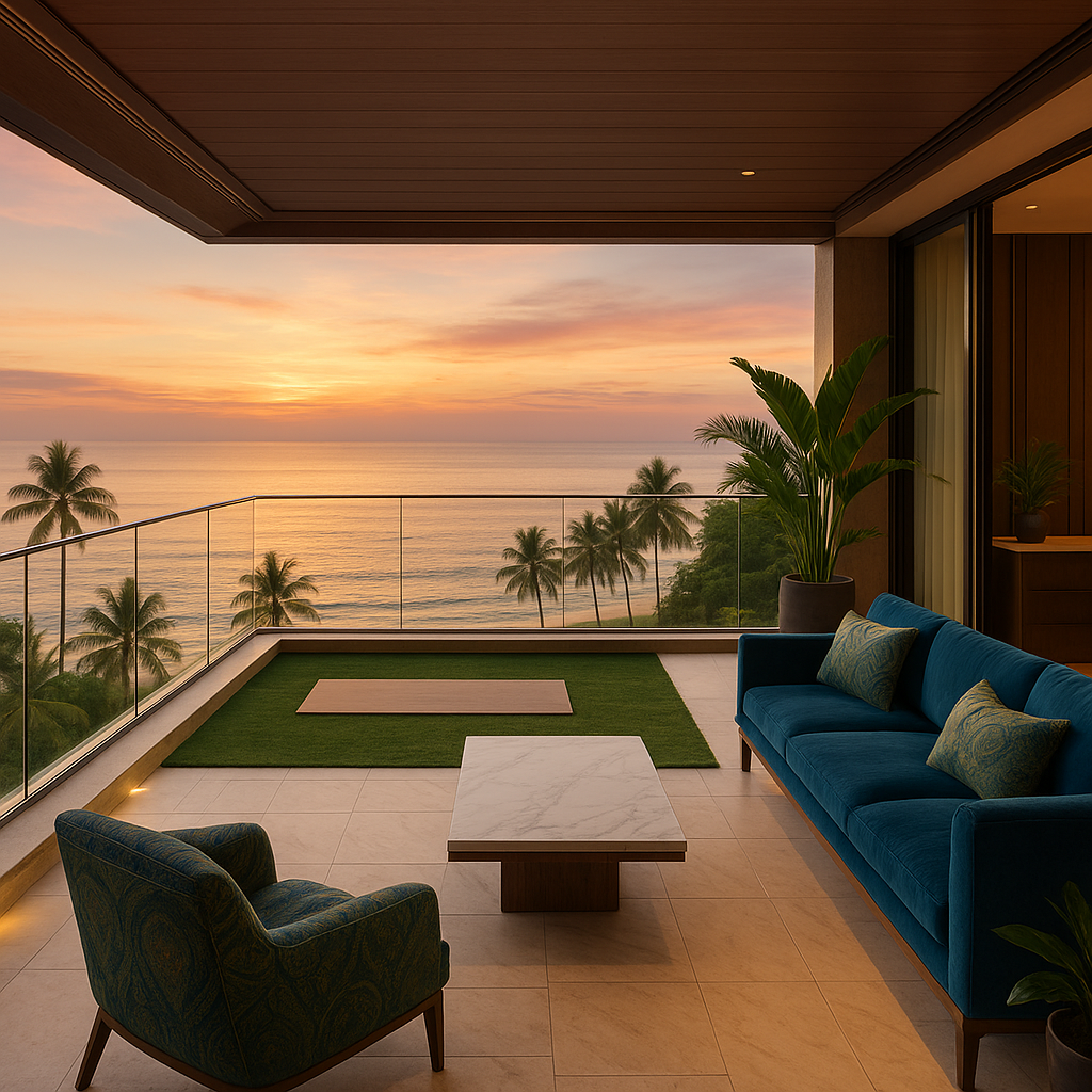 - Цветовая палитра: океанские синие, лесные зелёные и солнечные нейтральные оттенки, вдохновлённые природой Пхукета.