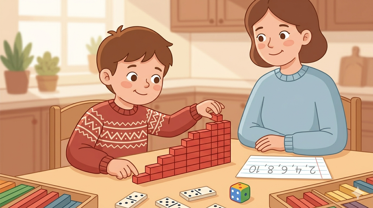 «Считай двойками» — ваш главный союзник. Считайте двойками по дороге в школу, по ступенькам, по плиткам на тротуаре: «2, 4, 6, 8, 10, 12…». Ритмический счёт закладывает паттерн в память через ритм и движение. Через неделю ребёнок будет «петь» эту последовательность автоматически.