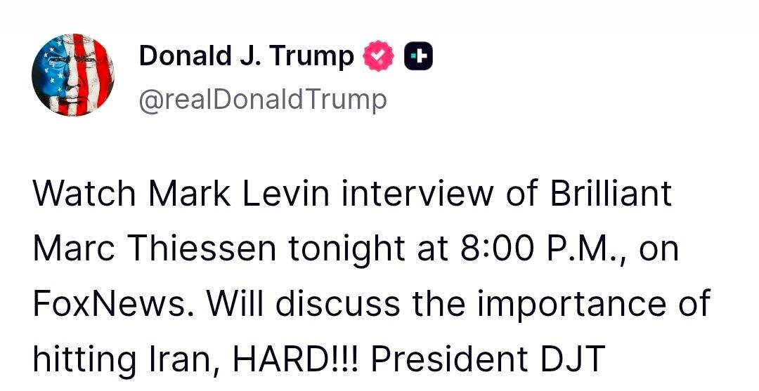 TRUMP: ‘Watch Mark Levin… will discuss importance of hitting Iran, HARD!!!’