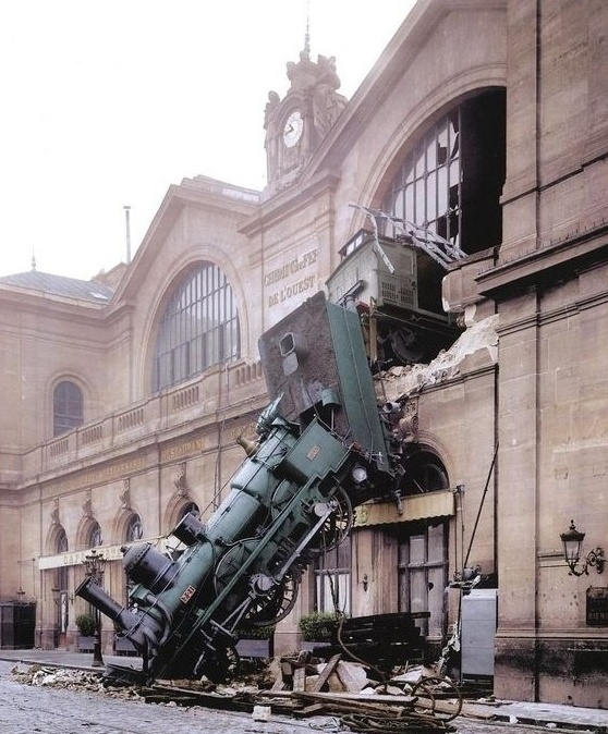 Представьте себе обычный парижский день 22 октября 1895 года. На улице Ренн, у вокзала Монпарнас, горожане спешат по своим делам. Продавщица газет Мари-Огюстин Агилар сидит в своём киоске и спокойно вяжет — сегодня она подменяет мужа, который отлучился за вечерними газетами . Вдруг раздаётся грохот, от которого содрогаются стены. Кто-то кричит. Она поднимает голову — и в следующее мгновение на неё обрушивается тонны кирпичной кладки. Паровоз, пробивший фасад вокзала, падает с десятиметровой высоты прямо на улицу .