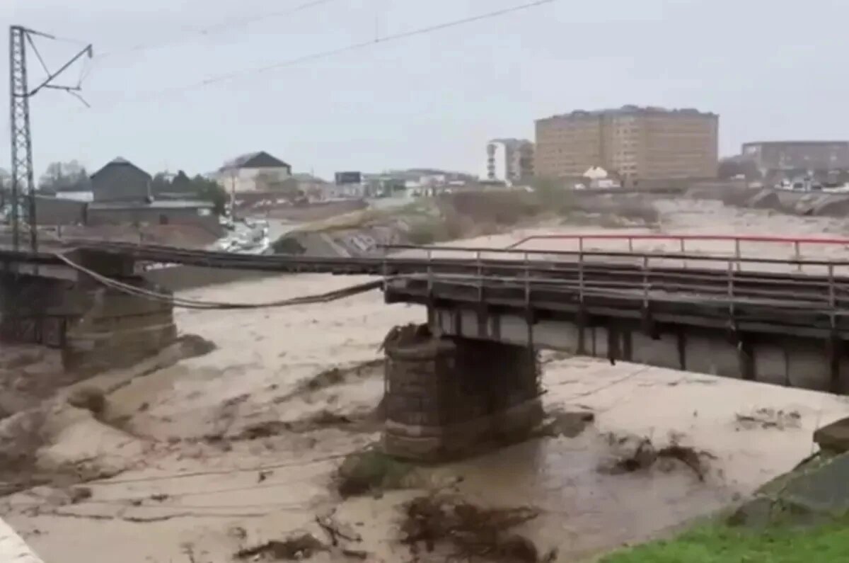 Из-за непогоды возникли сели и подтопления, которые привели к серьезным ЧП - отключению электричества и водоснабжения. В Хасавюрте обрушился железнодорожный мост и парализовал ж/д сообщение.