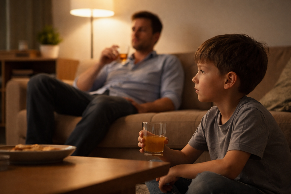 Казалось бы, важно одно: пьют в семье или нет. Сколько, как часто, по каким поводам. Но есть деталь, которую обычно упускают. Для ребенка имеет значение не только факт употребления ‒ но и то, кто именно пьет. Мать или отец. Это не одно и то же. Ребенок учится не через инструкции, а через наблюдение. И наблюдает прежде всего за тем, кто похож на него самого. Сын следит за отцом. Дочь ‒ за матерью. Не потому что один родитель важнее другого. А потому что ребенок ищет образец того, как выглядит взрослый человек его пола. Как он себя ведет, когда устал. Как переключается после работы. Как выглядит его вечер. Алкогольные привычки попадают в этот образец автоматически ‒ как тихий урок о том, как взрослые справляются с усталостью. Крупное продольное исследование развития детей зафиксировало гендерно-специфичный эффект. Дети, которые чаще наблюдали, как пьет мать, чаще приписывали алкоголь женским ролям ‒ в тестовых сценариях это проявлялось отчетливо. Наблюдение за отцом давало зеркальный рез