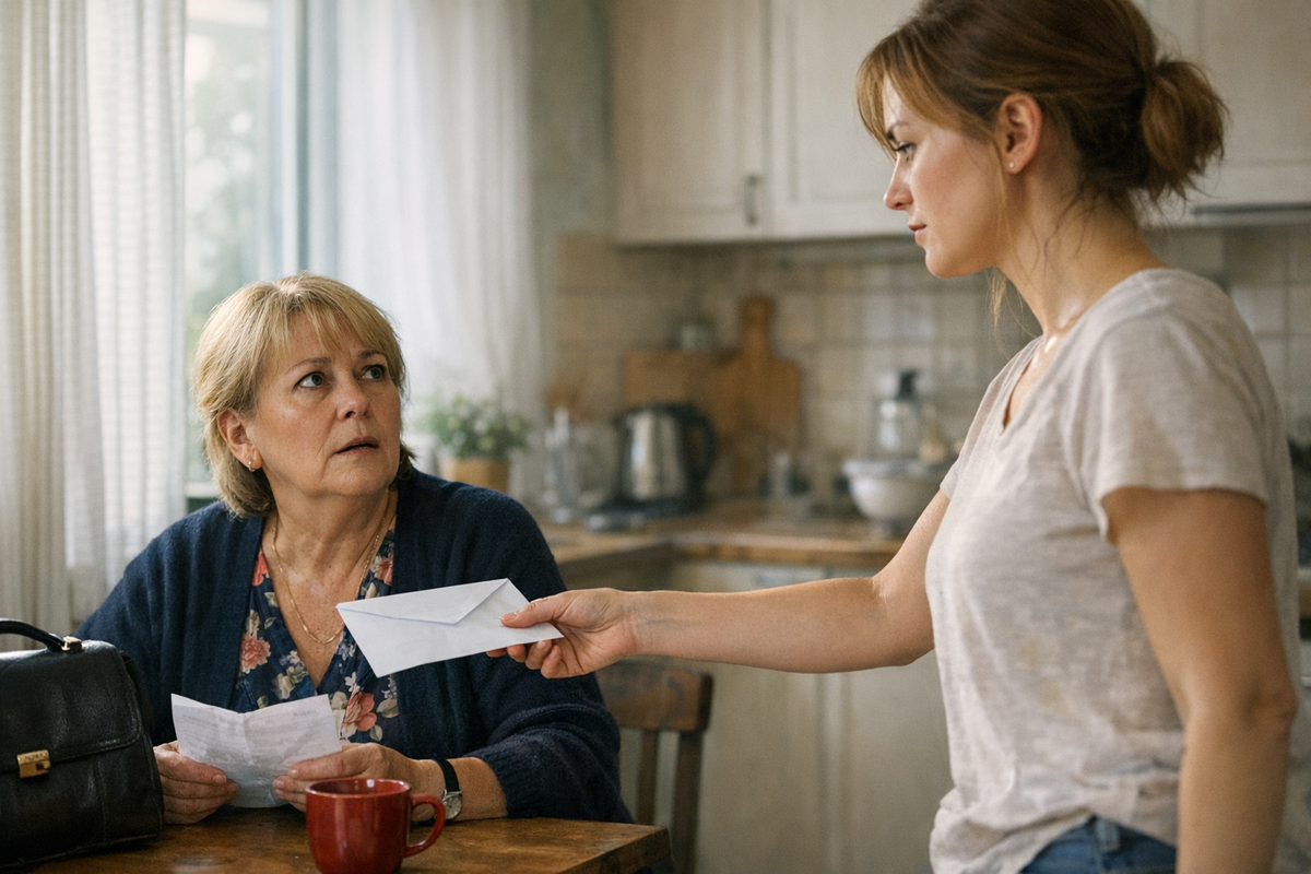 За спиной она молчала. Я слышала эту тишину — плотную, довольную. Достала белый конверт. Вернулась. Положила на стол.