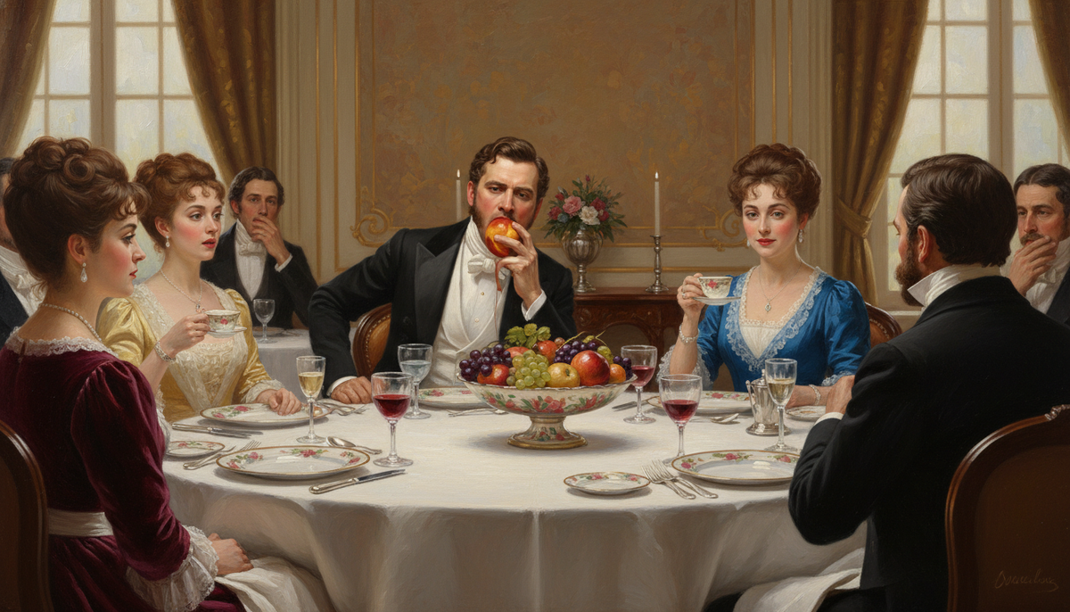 Однажды американская светская хроника всерьёз обсуждала один скандал: гость на приёме у губернатора взял персик и просто откусил от него. Целиком. Без ножа. Хозяйка дома позже призналась подруге, что именно в этот момент перестала рассматривать его как кандидата в мужья для своей дочери. Один жест. Одно движение руки. И разговор закрыт. Это не преувеличение. Это закономерность. За столом мы говорим не только словами. Каждое движение — это высказывание. И нигде оно не звучит так отчётливо, как в момент, когда перед вами кладут вазу с фруктами. Фрукты — самый коварный раздел этикета. Не потому что там много правил. А потому что они выглядят невинно. Груша, виноград, абрикос — что тут сложного? И вот в этой иллюзии простоты и кроется ловушка. Начнём с мелкого. Малина, голубика, смородина — их подают в креманках или порционных пиалах. Берут маленькой ложечкой. Неторопливо. По одной ягодке, а не щедрым захватом «про запас». Пиалу не запрокидывают как бульон — это отдельный вид ужаса для все