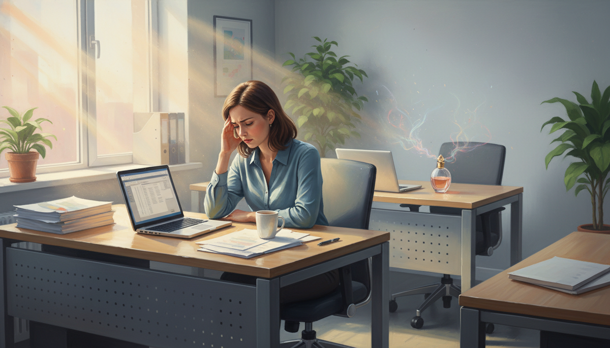 Недавно подруга рассказала, как три месяца ходила на работу с головной болью. Каждый день, ровно с десяти утра. Она сдала анализы, сходила к неврологу, купила дорогой матрас. А потом коллега ушла в отпуск — и боль исчезла. Причиной была туалетная вода. Мы живём в обществе, где человек тратит в среднем от 3 000 до 15 000 рублей на флакон, чтобы произвести впечатление. Но никто не предупреждает: то, что хорошо пахнет на прогулке, в замкнутом пространстве превращается в химическую атаку. Офис — это не улица. Это 18–20 квадратных метров, закрытое окно в январе и рециркулирующий воздух. Запах здесь не рассеивается — он накапливается. Представьте советский плацкарт июля. Петербург — Анапа, 16 часов в пути, 52 человека в вагоне. Каждый везёт варёные яйца, курицу и помидоры — потому что холодильника нет. Плюс жара, плюс отсутствие душа. Это комбо ароматов можно пережить два дня, убеждая себя, что скоро выходить. В офисе — 40 часов в неделю. Каждую неделю. И никакой конечной станции. Учёные дав