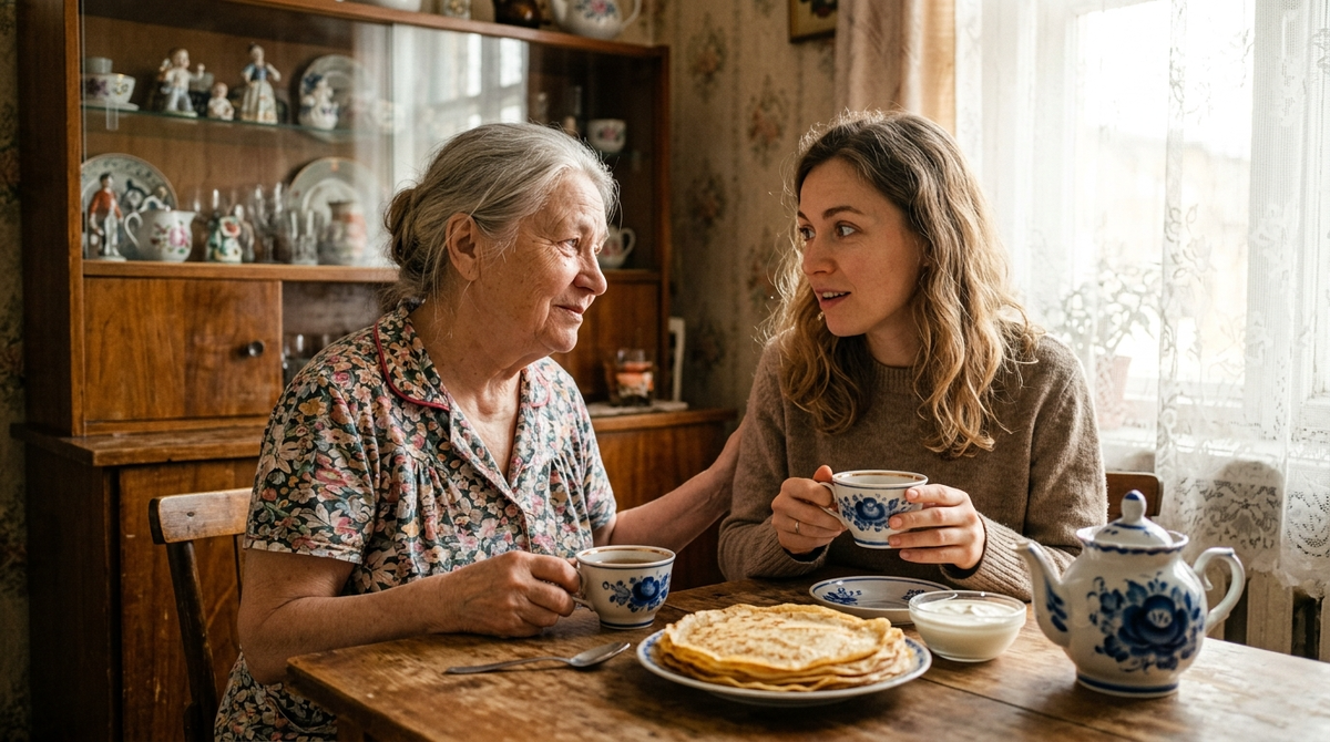 Она помогала Наде, как умела — варила бульон, когда у той был токсикоз, ходила с ней на рынок за зеленью, вечерами они вместе смотрели старые фильмы. Иногда Александра Степановна рассказывала — про мужа Степана, про его смешные привычки, про то, как они растили Дмитрия. Надя слушала и понимала, что узнаёт что-то важное — не просто истории, а людей, из которых вырос её муж.