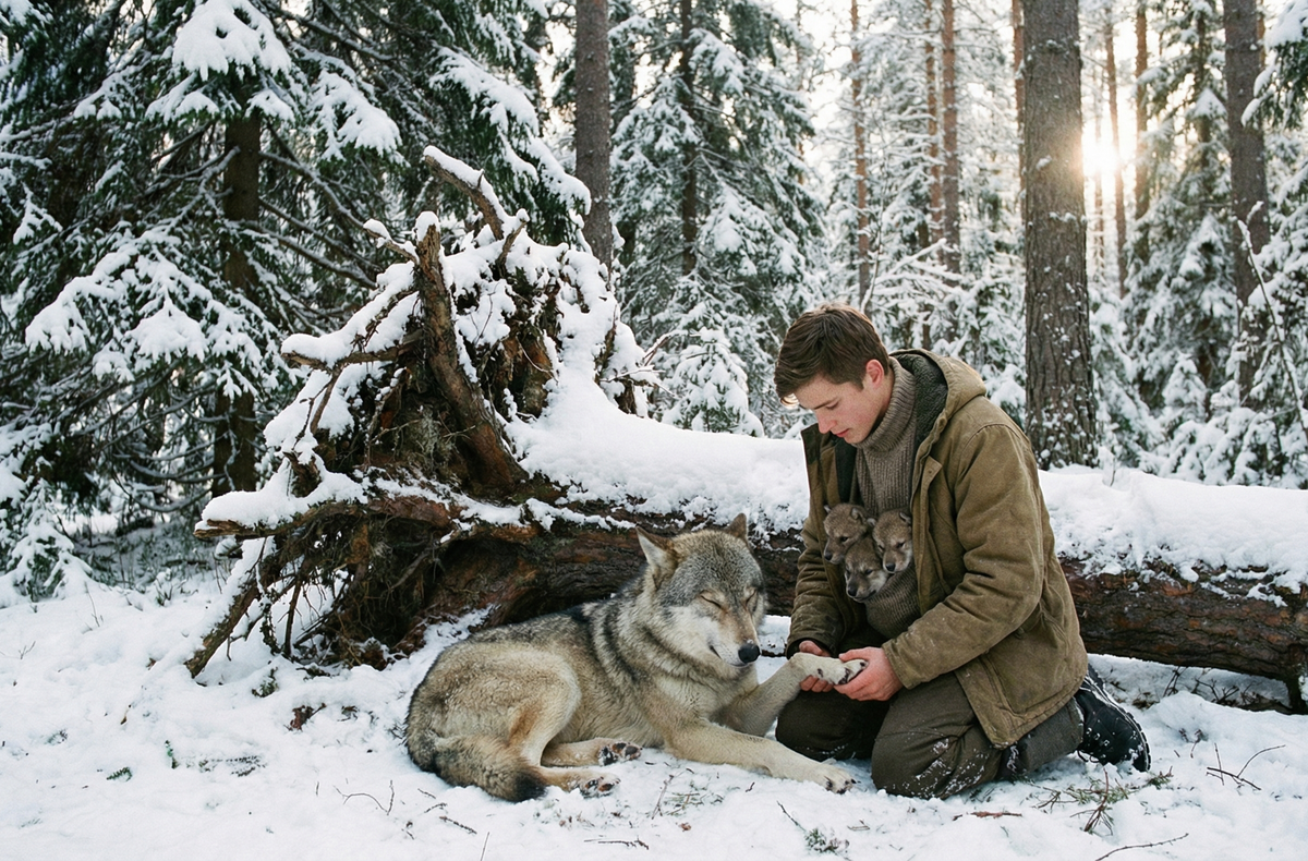 Старая волчица медленно подошла к Алексею. Она больше не рычала. Животное внимательно посмотрело в глаза человеку своим мудрым взглядом, словно говоря: «Я все помню». Затем она сделала еще один шаг вперед и аккуратно, по-собачьи тепло лизнула шершавым языком его холодную руку.