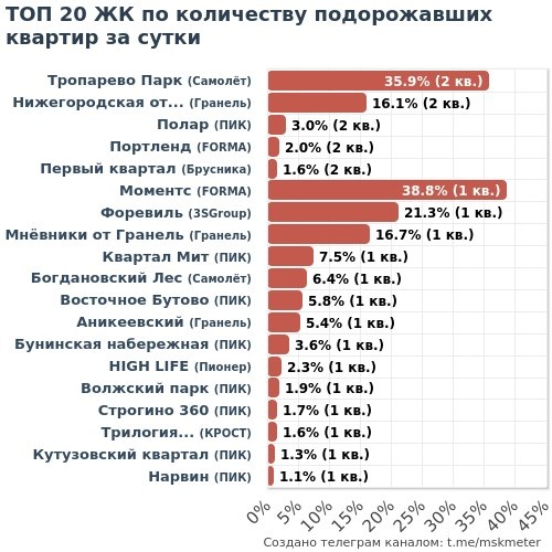 ) 🏆 ЛИДЕРЫ ПО РОСТУ: ПИК 8 ЖК 9кв +3,2% Гранель 3 ЖК 4кв +12,7% FORMA 2 ЖК 3кв +20,4% Самолёт 2 ЖК 3кв +21,1% 3SGroup 1 ЖК 1кв +21,3% Брусника 1 ЖК 2кв +1,6% КРОСТ 1 ЖК 1кв +1,6% Пионер 1 ЖК 1кв +2,3% 👇 Полная статистика: 📲 В Telegram — быстро посмотреть 🌐 На MskMeter.ru — графики цен и скидки за любой период