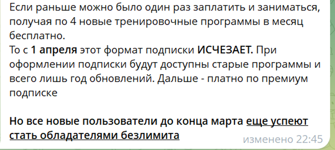 А для тех, кто покупает подписку до первого апреля, прежние условия сохраняются.