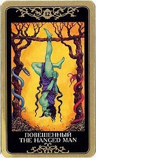 Аркан Таро 12 «Повешенный Бог, Повешенный человек» можно видеть как «1 и 2» = «Единый двоится». «Перевернуть с ног на голову» - лгать. Лжец это «князь мира сего диавол».
