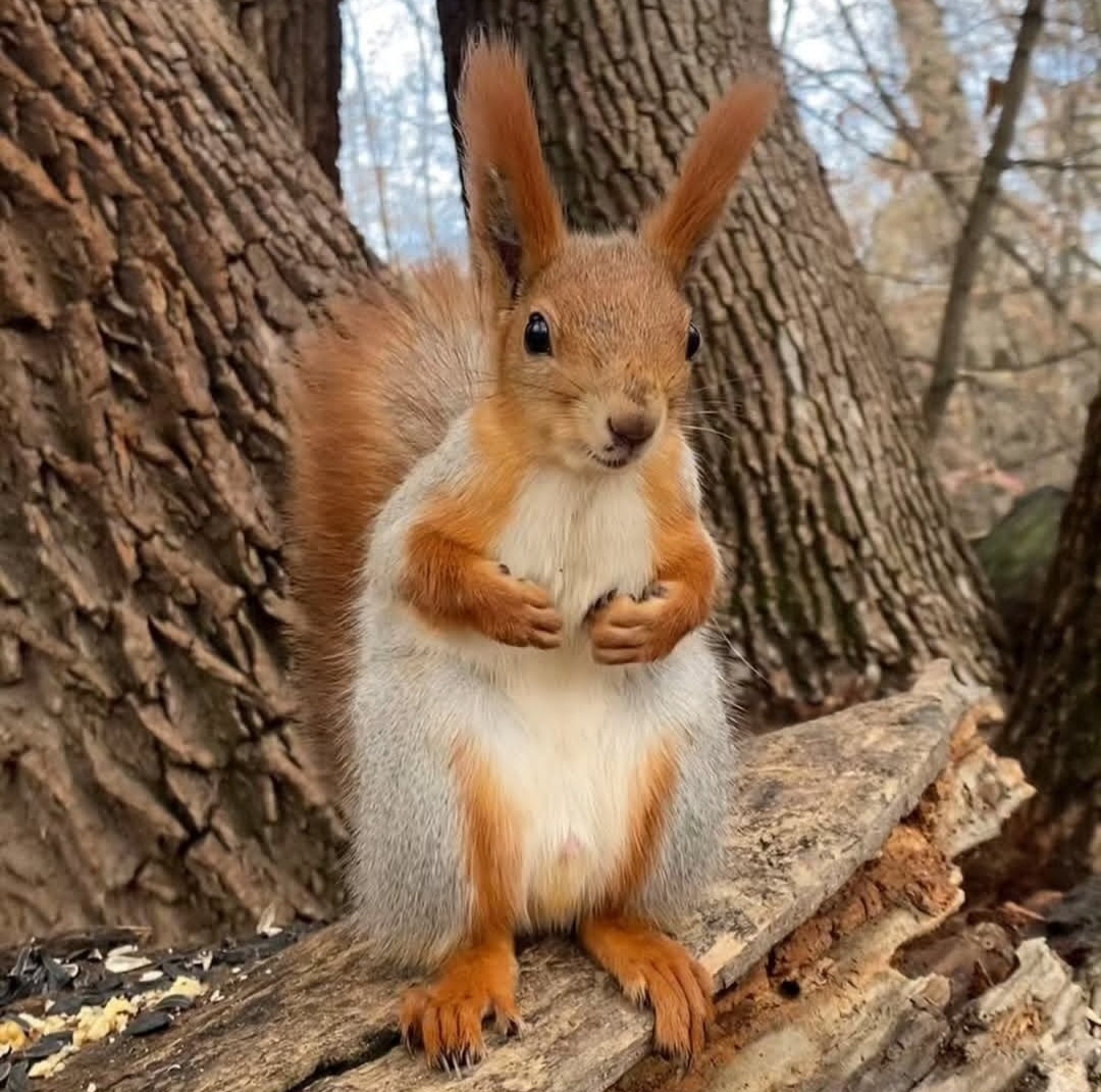Белки весной в тайге: рыжеют, ищут еду и пьют березовый сок