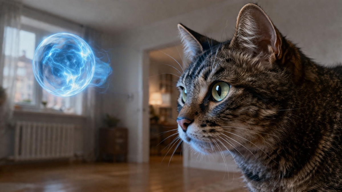 То, что попытки «ловить» происходят не каждый день, а раз в несколько недель — тоже говорит о многом. Это значит, что объект не живёт в Вашей квартире постоянно. Он приходит. Появляется, задерживается ненадолго и уходит. Именно поэтому Вы с мужем ничего не ощущаете — присутствие слишком кратковременное и слабое, чтобы человек без практики его зафиксировал. А вот кот фиксирует, потому что порог чувствительности у него несопоставимо ниже Вашего.