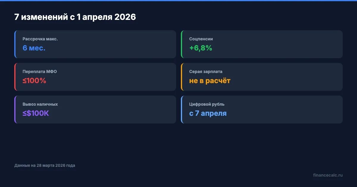 Через 3 дня — 1 апреля 2026 года — вступают в силу 7 финансовых изменений, которые затронут миллионы россиян. Пенсионеры получат прибавку. Заёмщики с серой зарплатой потеряют доступ к кредитам. А рассрочка «0-0-24» уйдёт в прошлое. Какие именно цифры меняются — и что с этим делать?