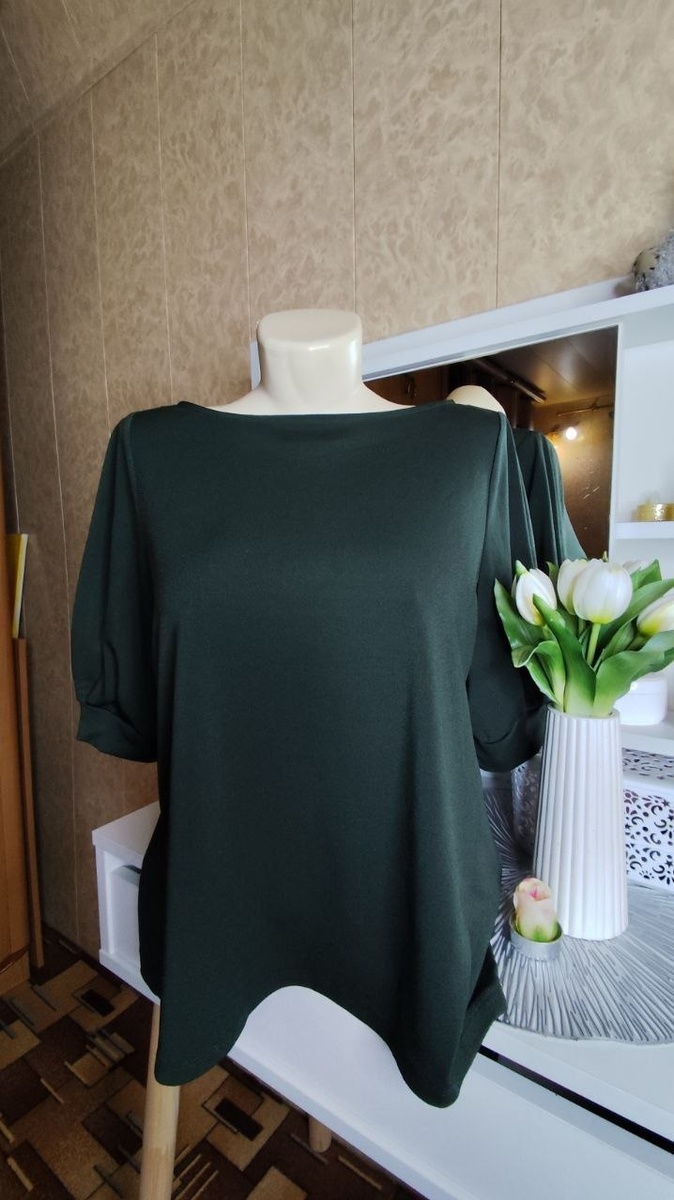Блузка глубокого зелёного цвета от бренда N&M производство Камбоджиа. Размер М 44-46 Рукава фонарики, по низу которых идёт манжета. Крой не прямой, к низу слегка расклёшенная. Состав ткани: 95% полиэстер, 5% эластан Длина по спинке - 56 см Пог - 51 см Ширина по низу блузки 56 см Длина рукава - 33 см Ширина рукава по манжете - - 12 см Состояние идеальное Цена 700 рублей ЦЕНА 500 РУБЛЕЙ + пересылка