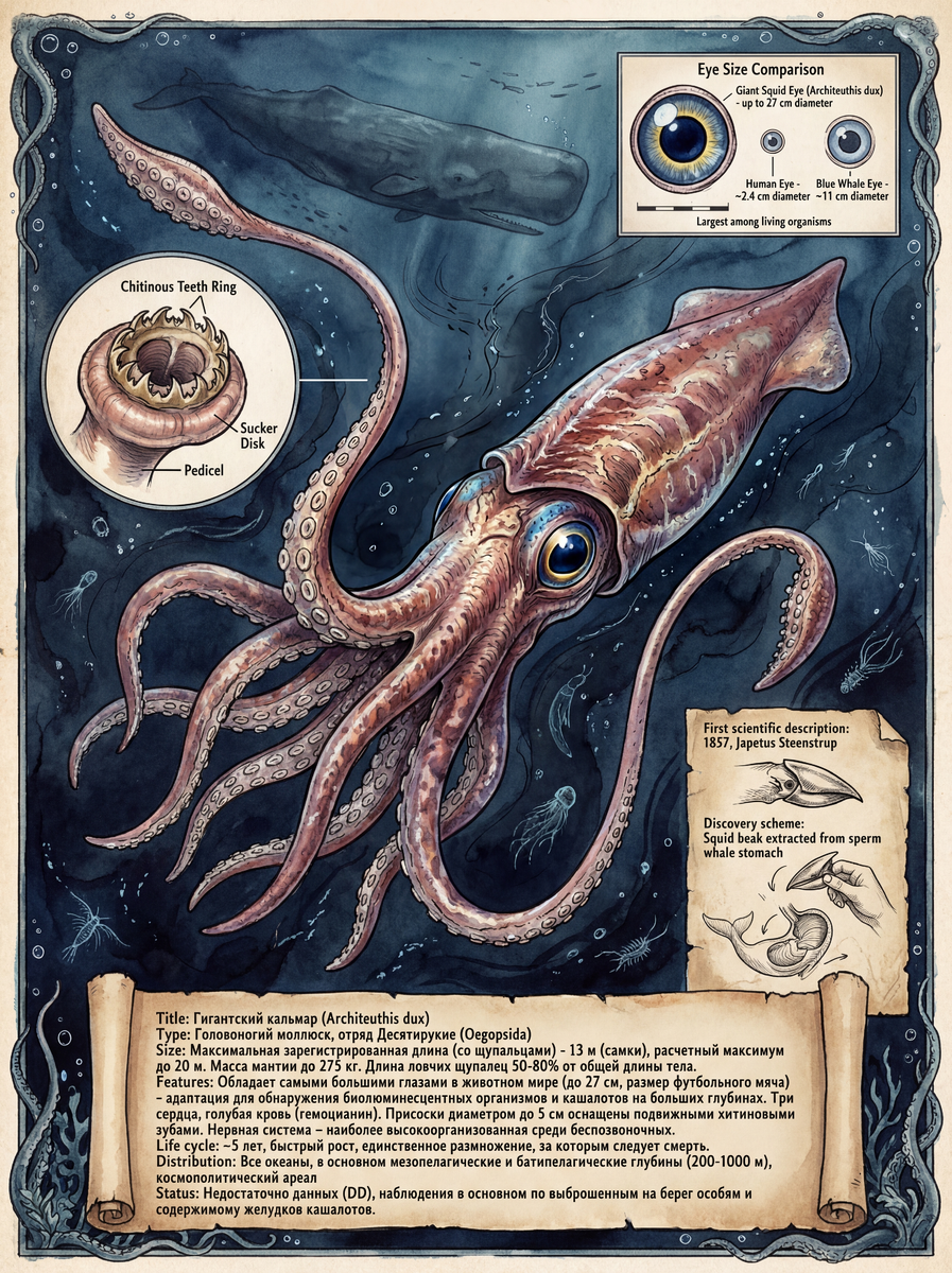 P.S. В следующий раз, когда посмотришь на океан, вспомни: где-то там, в темноте, движется существо с глазами размером с тарелку и щупальцами длиной с автобус. Оно старше динозавров. Оно умнее, чем мы думаем. И оно не знает, что мы о нём рассказываем.