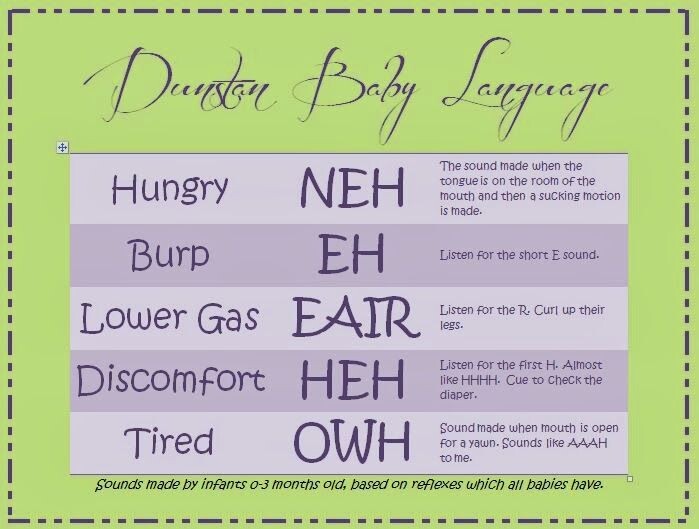 - Если грудничок "говорит" neh (ня, ни, ню) - он голоден. Звук является воспроизведением сосательного рефлекса, когда язык пристаёт к нёбу, как будто во рту у ребёнка уже есть мамина грудь или соска.