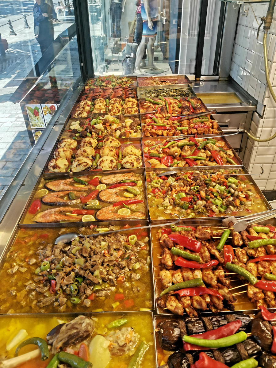 Гуляя по оживленной улице ресторанчиков возле площади Султанахмет, я не смогла пройти мимо витрины, манящей яркими и аппетитными блюдами. Ассортимент выглядел настолько заманчиво, что, даже не будучи очень голодной, я почувствовала острое желание что-нибудь попробовать. Вывеска «Baran Et & Mangal» привлекла мое внимание, и я решила, что это место стоит посетить. Позже, изучая информацию о ресторане онлайн, я узнала: «Baran Grill – это настоящий оазис турецкой кухни, где главную роль играет свежее, высококачественное мясо, приготовленное на гриле. Неудивительно, что это место стало излюбленным среди ценителей мясных блюд в стамбульском районе Фатих. В меню вас ждут сочные стейки, ароматные кебабы и фрикадельки, а также фирменные блюда, приготовленные на углях, на вертеле, и, конечно же, курица на гриле». При входе меня встретили с предложением выбрать блюдо прямо с витрины. Я указала на две позиции, намекая, что хотелось бы попробовать понемногу. Официант щедро наполнил мою тарелку, и э