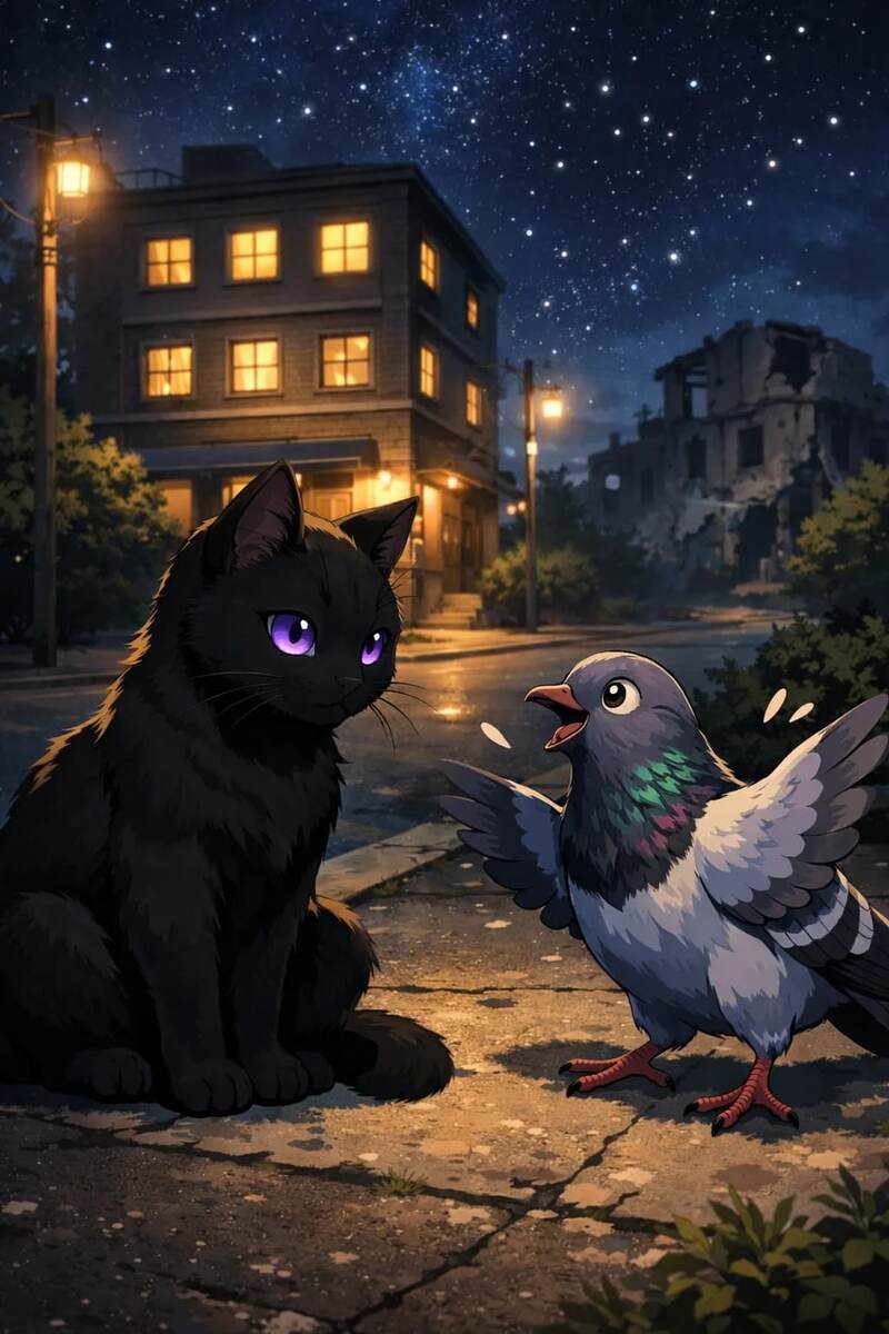 — Ладно, страж окна... Я пожалуй, пойду. Завтра мы раздобудем все данные. Вместе. Но только, если будешь вести себя тихо. — и кот ушёл, оставив голубя в одиночку размышлять о завтрашнем дне. Немного посидев в раздумьях, он вспорхнул и улетел.