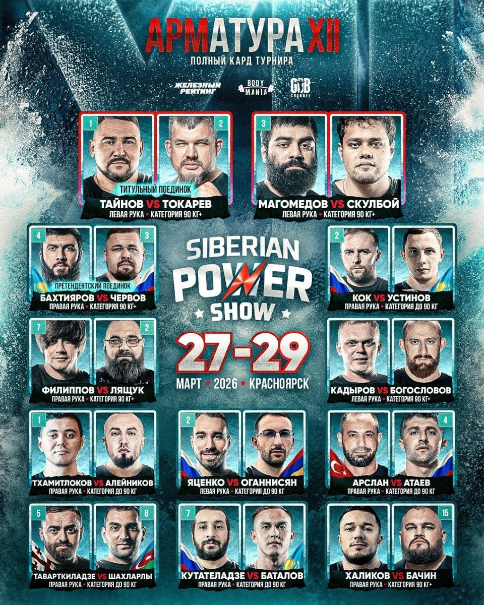 📌Очередность пар: 1.Вячеслав Кутателадзе vs Алексей Баталов 2. Вадим Алейников vs Ислам Тхамитлокова 3.Таварткиладзе vs Шахларлы 4.Ярослав Яценко vs Вачаган Оганнисян 5. Сергей Богословов vs Салават Кадыров 6. Дима Кок vs Данил Устинов 7. Сергей Червов vs Айдын Бахтияров 8. Александр «Скулбой» Безъязыков vs Руслан Магомедов И главная пара Сергей Токарев vs Артём Тайнов в 14:30 по МСК СМОТРЕТЬ ТРАНСЛЯЦИЮ 💙 ❓Будете смотреть трансляцию турнира? 🔥 - да, буду в прямом эфире смотреть ❤️ - просто итоги потом посмотрю Наш канал | Чат | Магазин Наш Дзен | МАХ | ВКонтакте #armwrestling #АРМАТУРА