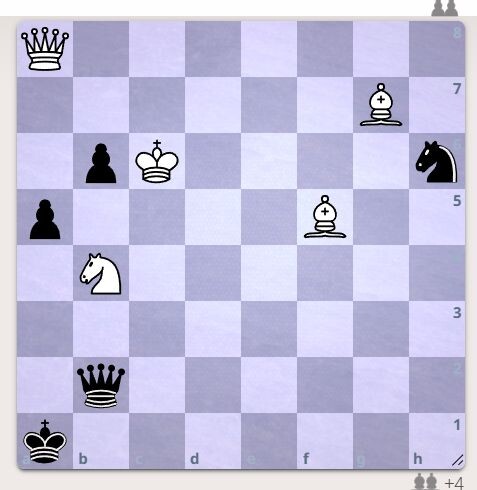 На шахматной доске сложная позиция. На доске аж два ферзя. Автор задачи В. Кузьмичев, 1986 год. Условие задачи в конце статьи. Подписывайтесь и ставьте лайк. Первый верный ход смотрите в галерее. Белые начинают и ставят мат в 2 хода.
