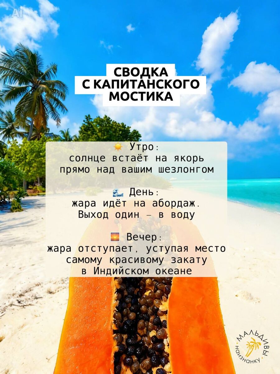 : Апрель будет самым жарким месяцем в сезоне Ируваи🔥❤️ Кто успеет пришвартоваться в апреле - тот сорвет джекпот! Потому что даже самая лютая жара на Мальдивах - это все равно райская температура в сравнении с серыми буднями😎🏴☠️