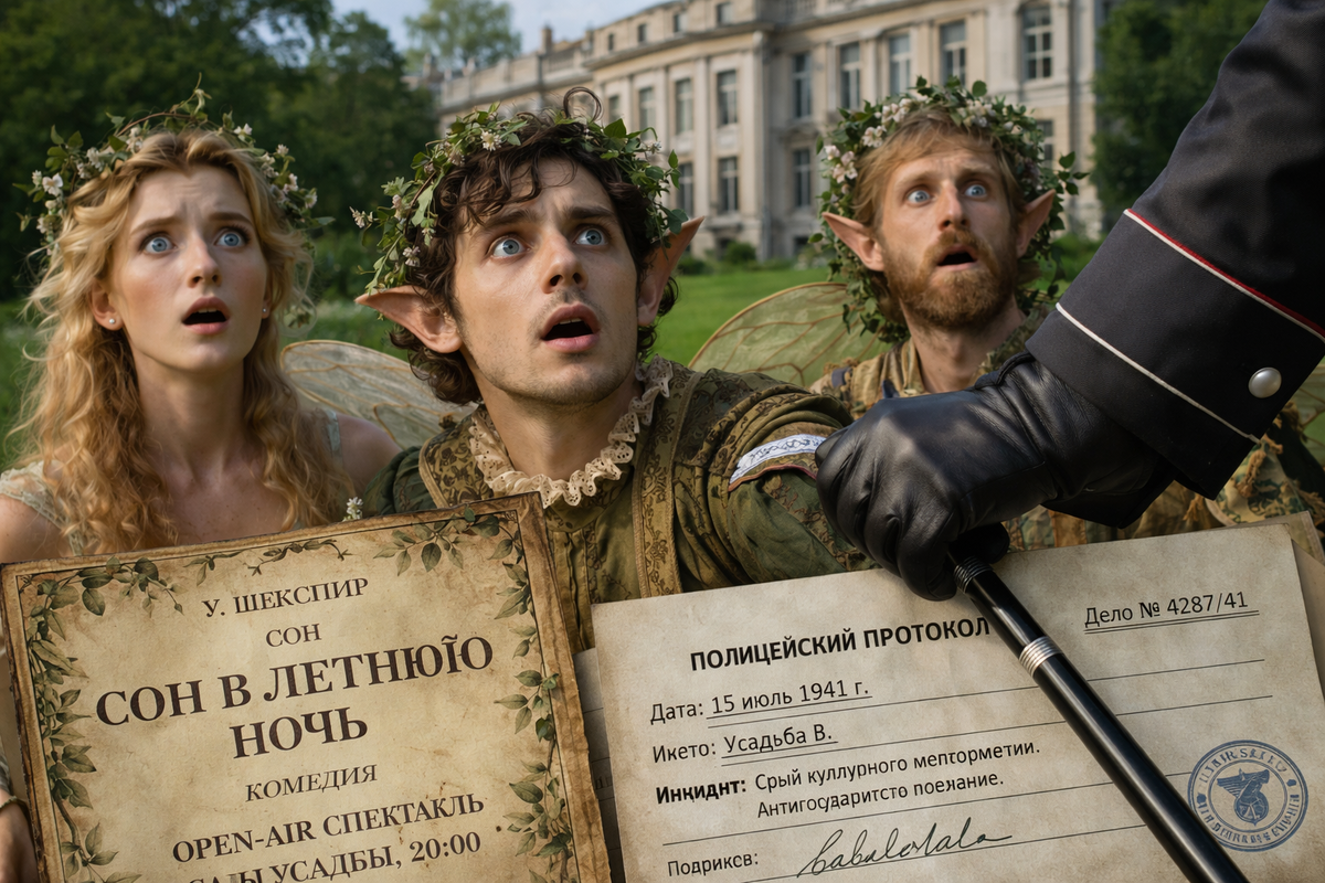 Пак в финале «Сна в летнюю ночь» прямо обращается к публике: если что-то пошло не так, считайте всё приснившимся. Это не просто изящный уход — это признание, что театр уязвим и открыт к вторжению реального мира. Четыре века спустя это вторжение приняло форму человека в нацистском мундире, блуждавшего по трёхтысячеакровому парку.