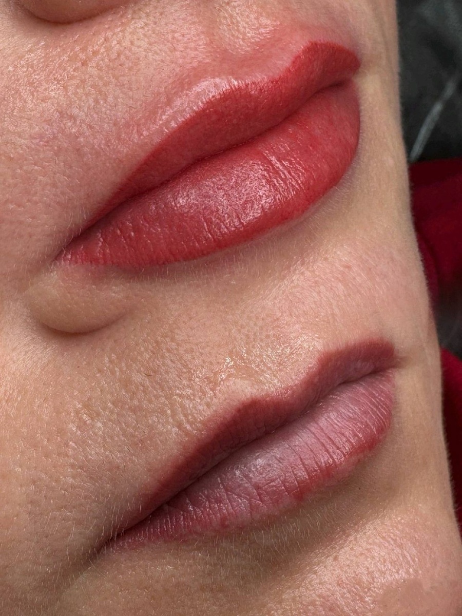 Это была непростая задача: сложная база губ — синюшный оттенок и необычная пигментация. Но мы справились! Сейчас самый важный этап — заживление. Терпение, и результат поразит своей красотой и натуральностью 💫 Уверена, моя клиентка будет в полном восторсте! А я пока наслаждаюсь этим преображением 💄