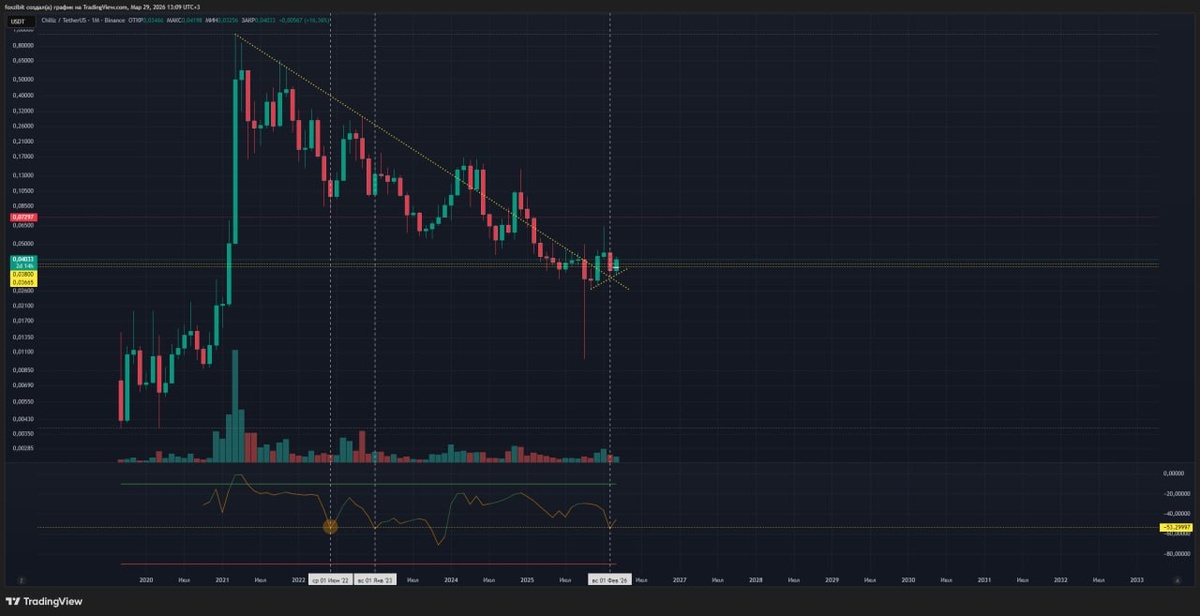 Актив показывает признаки аккумуляции, сформировав огромный пул шорт ликвидности выше. Позиционируется как фан-токен, ЧМ-26, вижу в этом хороший тайминг для распределения актива. Закреп с ретестом месячной нисходящей. Локально есть пробитие локального BoS максимума. Вижу 2 возможности для входа - 1) 0.038$ - середина дневного дисбаланса; 2) 0.0366$ - минимум объемов внутри дневного дисбаланса. Стоп - 0,339$. Цели: консервативно - 0,0072$; остаток позиции - надежда на снятие всех хаев выше. #Crypto #altcoins