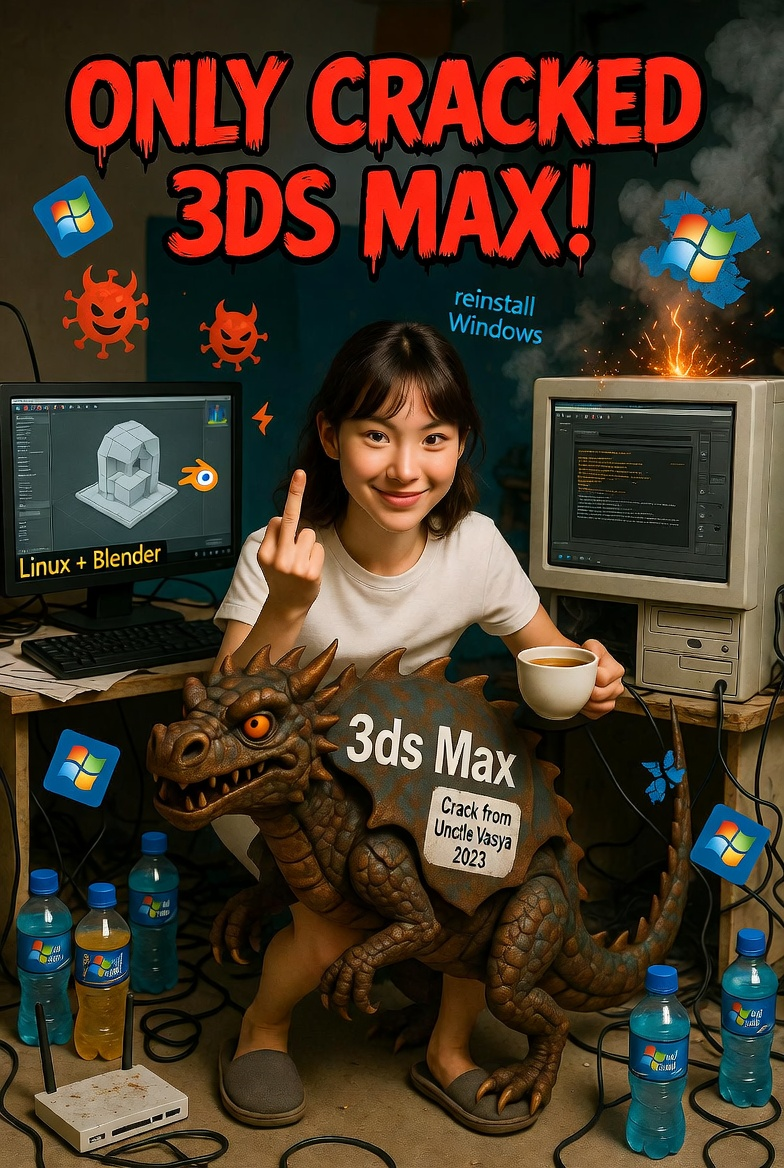 Привет! Представьте картину: комп у дамы внезапно «глюканул», как старый телевизор в грозу. Она в панике пишет подругам: «Надо Винду переставлять!» А тут вы, добрый самаритянин с Линуксом в душе, предлагаете: «Давай поставлю тебе нормальную систему, будет летать и не ныть». Она сначала заинтересовалась, даже выслушала короткую лекцию про свободный софт… а потом побежала к «мастеру по Винде». Тот навешал классической лапши про «совместимость», и вердикт готов: «Нет, мне только 3ds Max нужен, он только на Винде работает, сорри». И всё. Точка. Финал сезона. А теперь давайте без розовых очков разберёмся, почему в 2026 году фраза «только 3ds Max» звучит примерно так же свежо, как «мне только кассетный плеер, CD — для лохов». 3ds Max родился ещё в 1996-м, когда интернет пищал по модему, а Windows была единственной королевой. Autodesk сделал из него настоящего монстра для архитектуры, интерьеров и всего, где нужна ювелирная точность: сплайны, булевы операции, куча плагинов под фотoreal. Он д