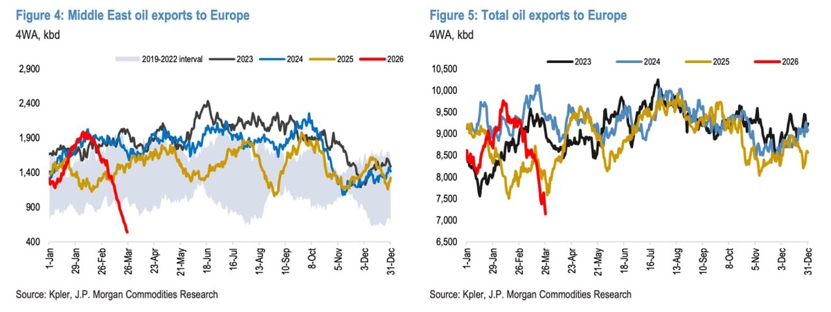На графиках экспорт нефти в Европу. Слева — из Ближнего Востока, справа — общий.