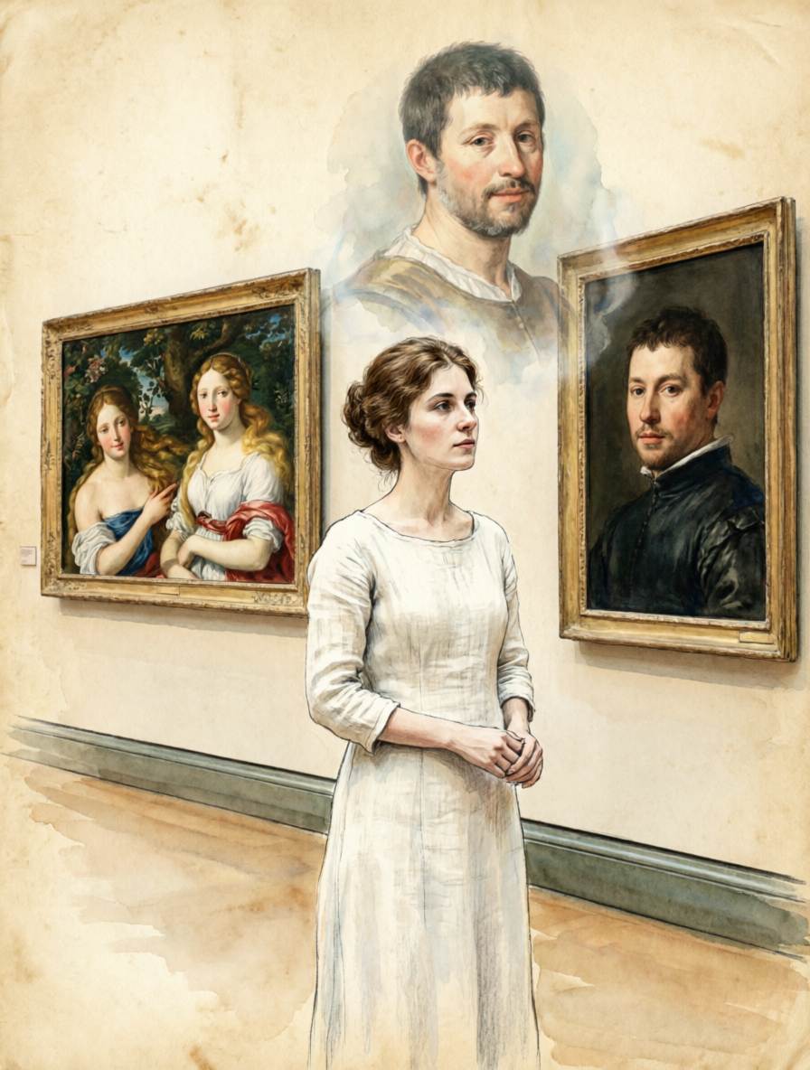 Тициан поднял руку, и свет на полотне словно ожил: море задвигалось, облака поплыли, колокол прозвучал где-то в глубине будущего.