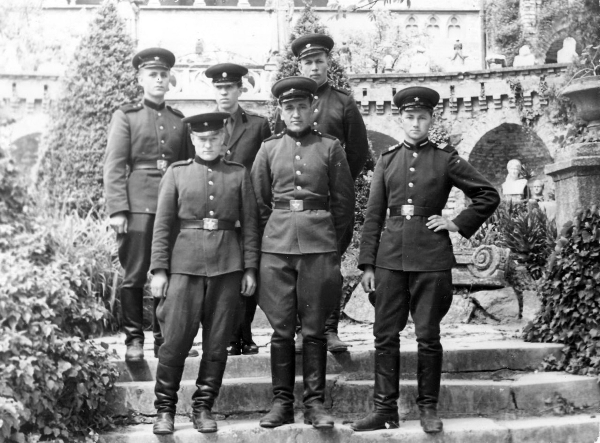 Группа советских военнослужащих на экскурсии в каком-то парке