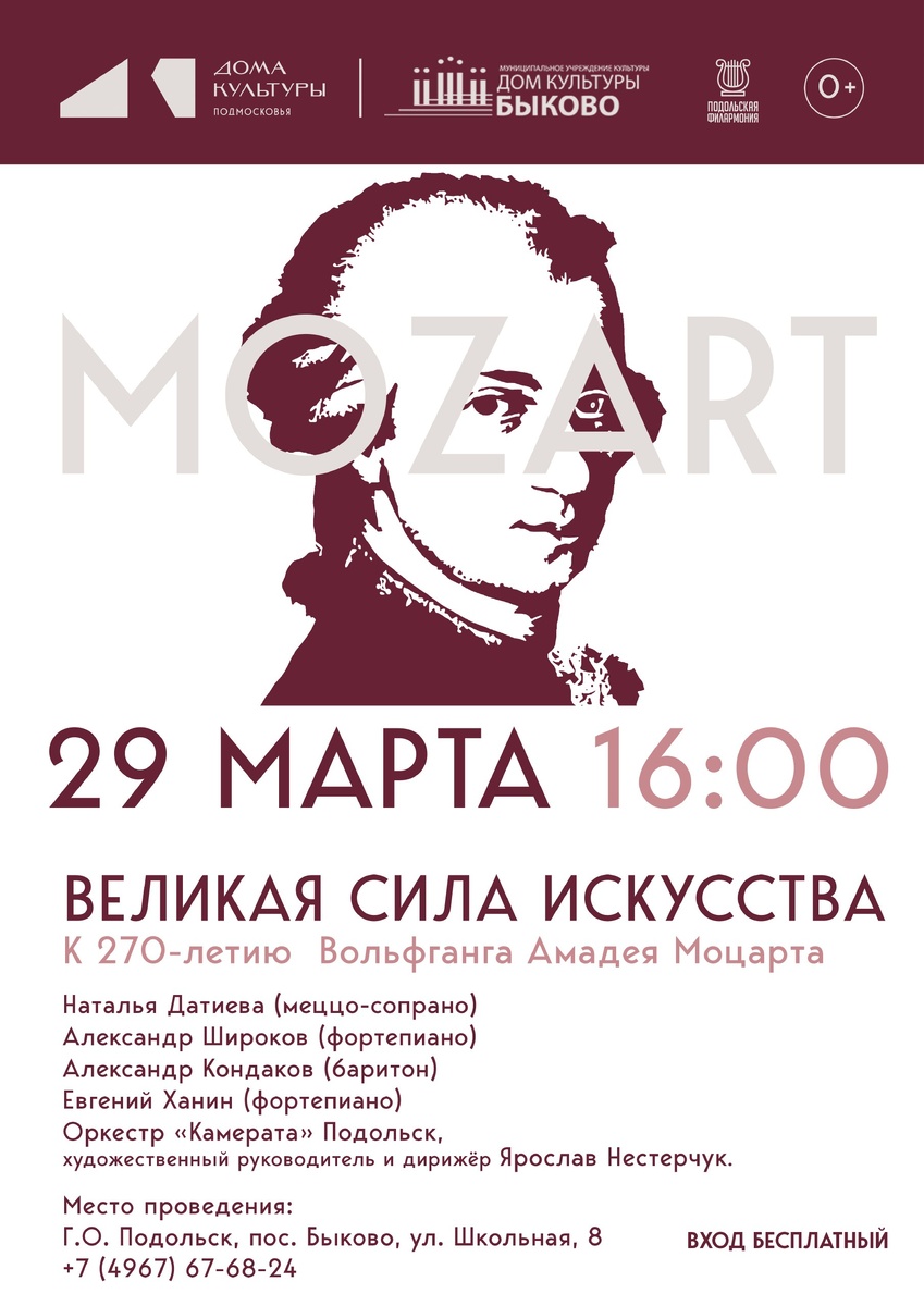 ✨ Сегодня концерт «Великая сила искусства» В программе: 🎼 Знаменитая «Маленькая ночная серенада» и солнечная Соната До-мажор. 🎼 Арии из опер и камерная вокальная лирика. 🎼 Литературная жемчужина — пронзительный рассказ Паустовского «Старый повар» о том, как музыка может творить чудеса. 👉В этот вечер для вас будут играть и петь солисты Подольской филармонии. 🚫 Возраст: 0+ 📆 29.03.2026 🕒 16:00 🏢 Дом культуры «Быково» 📍 Московская обл., г. Подольск, п. Быково, ул. Школьная, д. 8 💰 Вход свободный❗️ ⭐Поддержать канал голосом 🍰Где поесть в Подольске ✅ Мероприятия Подольск https://dzen.ru/id/66ed500f7b5671493eca3fd6 https://vk.ru/podolsk_events http://dzen.ru/podolsk_events