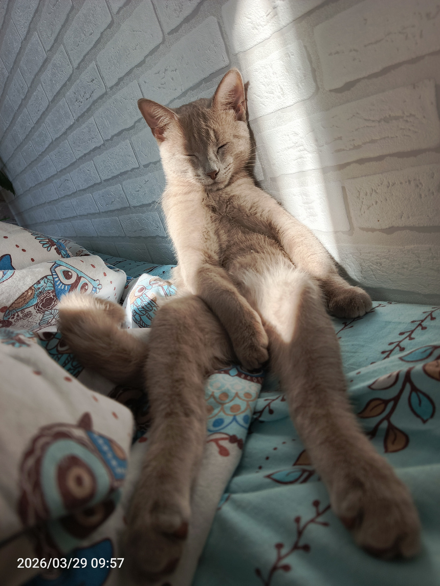 Постоял на моей груди и пошел ждать🤭😄
