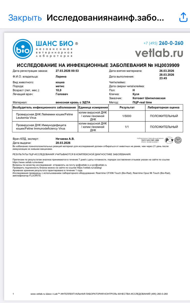Немного о Кузе. Потихоньку кушает, но вялый конечно. Получили анализы на инфекции, лейкоз и иммунодефицит. Скорее всего нужно делать переливание. Остаемся в клинике . Эх, а хорошие новости будут когда-нибудь? В общем как-то так.