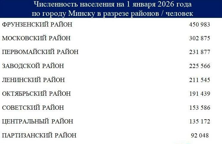 Π ΠΠΈΠ½ΡΠΊΠ΅ Π½Π° 2026 Π³ΠΎΠ΄ ΠΏΡΠΎΠΆΠΈΠ²Π°Π΅Ρ ΠΏΠΎΡΡΠΈ 2 ΠΌΠ»Π½ ΡΠ΅Π»ΠΎΠ²Π΅ΠΊ, ΠΈ Π²ΠΎΡ ΠΊΠ°ΠΊ ΡΠ°ΡΠΏΡΠ΅Π΄Π΅Π»ΡΠ΅ΡΡΡ Π½Π°ΡΠ΅Π»Π΅Π½ΠΈΠ΅ ΠΏΠΎ ΡΠ°ΠΉΠΎΠ½Π°ΠΌ: πΠ€ΡΡΠ½Π·Π΅Π½ΡΠΊΠΈΠΉ β 450 983 πΠΠΎΡΠΊΠΎΠ²ΡΠΊΠΈΠΉ β 302 875 πΠΠ΅ΡΠ²ΠΎΠΌΠ°ΠΉΡΠΊΠΈΠΉ β 231 877 πΠΠ°Π²ΠΎΠ΄ΡΠΊΠΎΠΉ β 225 566 πΠΠ΅Π½ΠΈΠ½ΡΠΊΠΈΠΉ β 211 545 πΠΠΊΡΡΠ±ΡΡΡΠΊΠΈΠΉ β 191 439 πΠ‘ΠΎΠ²Π΅ΡΡΠΊΠΈΠΉ β 153 586 πΠ¦Π΅Π½ΡΡΠ°Π»ΡΠ½ΡΠΉ β 135 172 πΠΠ°ΡΡΠΈΠ·Π°Π½ΡΠΊΠΈΠΉ β 92 048 βοΈ ΠΠΈΠ½ΡΠΊΠ°Ρ β’ ΠΠΎΠ΄ΠΏΠΈΡΠ°ΡΡΡΡ