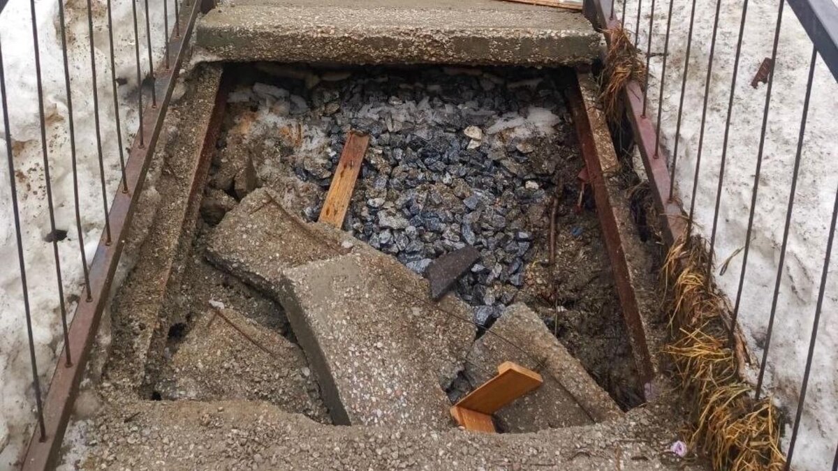 Лестница между домом и детским садом обрушилась в Заельцовском районе Новосибирска