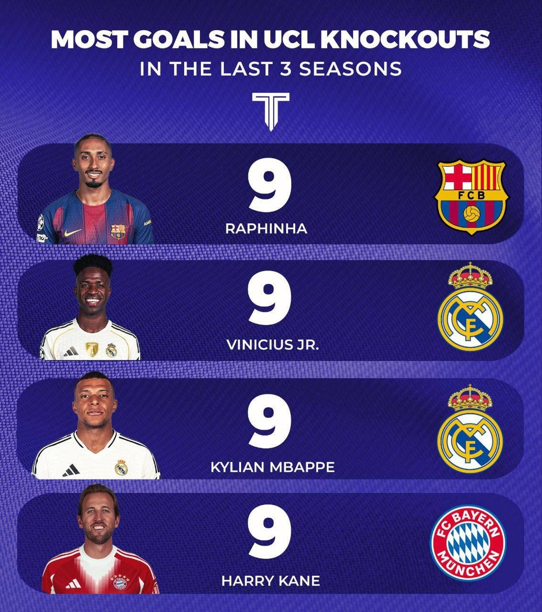 Лучшие бомбардиры в плей-офф Лиги Чемпионов за последние 3 сезона