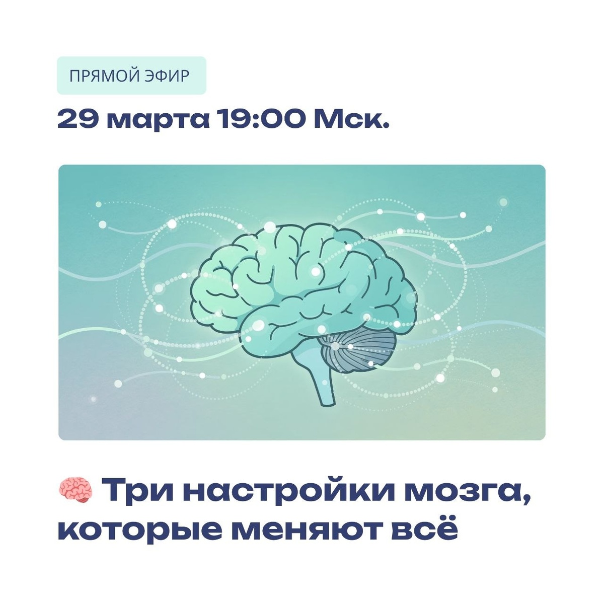🗓 29.03 в 19:00 мск 🎯 Расскажу о 3 настройках, которые сильно изменят качество вашей жизни! Это необходимо для реальных изменений, а не чтобы «потом» 😉 🧠 Три настройки мозга, которые меняют все (Не про позитивное мышление и не про установки миллионера.) Разберем: — Почему люди годами не могут изменить жизнь — Какие 3 настройки определяют всё: решения, отношения, уровень энергии — Как их менять — конкретно и без самокопания — Как их менять — конкретно и без самокопания 📘 Подробный материал и практические инструменты. Чтобы вы применили знания — сразу дам практику, которая позволит быстро поменять эти 3 настройки мозга. ✔️ Встречаемся в 19:00 мск 29.03 в телеграм канале «Вселенская перезагрузка»