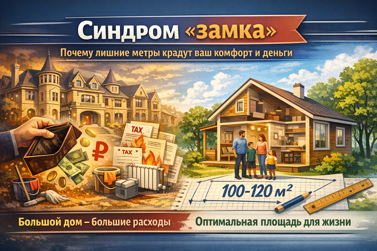 100–120 м² закрывают повседневные потребности семьи из четырёх человек. Всё, что уходит за 140 м², начинает регулярно тянуть деньги и время, при этом используется частично.