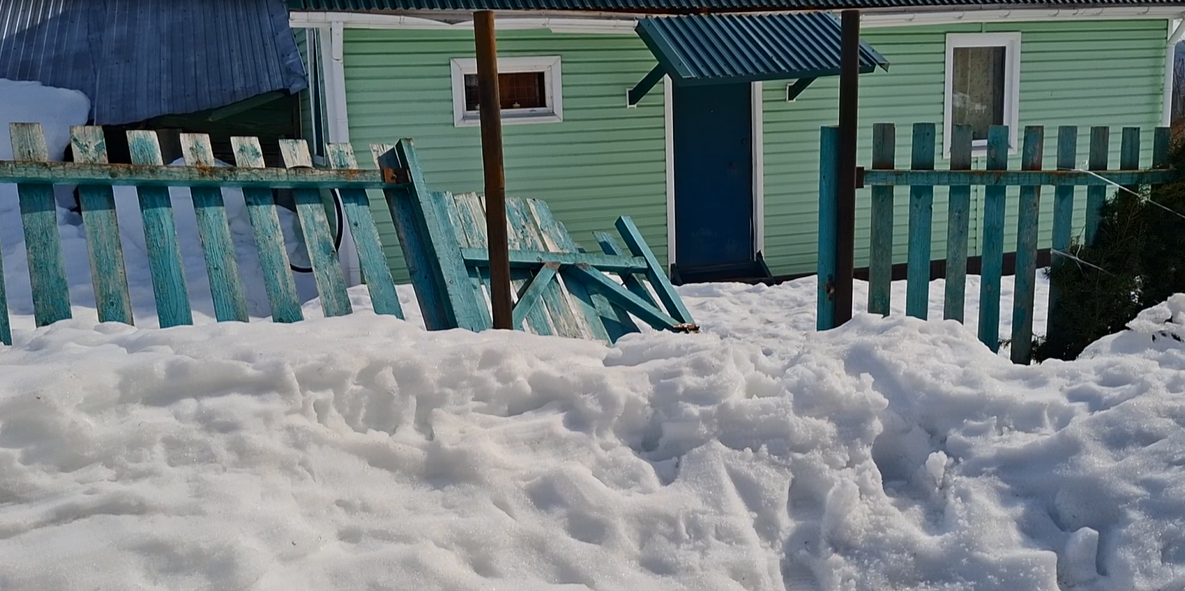 Российские садоводы вовсю обсуждают урон, нанесенный экстремальными снегопадами зимы 2025-2026. Думаю, этот год мы запомним надолго. Первое, о чем начали говорить - это теплицы. Судя по разговорам, сложилось чуть ли не половина теплиц на участках, где не зимуют. Это, конечно, досадно. Но, съездив вчера к себе в деревню, мы поняли, что, кажется, теплицы - это далеко не всё. Будут проблемы и похуже. Первое, что мы увидели, подойдя к дому - это вырванная с мясом калитка. Валяется, несчастная, вместе с куском забора. Ее выдавило снегом, съехавшим с крыши. Как подумаешь, что это за масса, плоховато делается. Впрочем, отремонтировать калитку с секцией забора - это несложно. На двух соседских участках поломало-таки теплицы. Одна 3х4 метра, другая 3х6 метра. Вот эта особенно сильно пострадала: Теплица сделана из очень тонкого металла, хотя сама труба стандартного сечения, оцинкованная. О конструкции следующей теплицы ничего сказать не могу. Мне всегда казалось, что четырехметровые теплицы ме