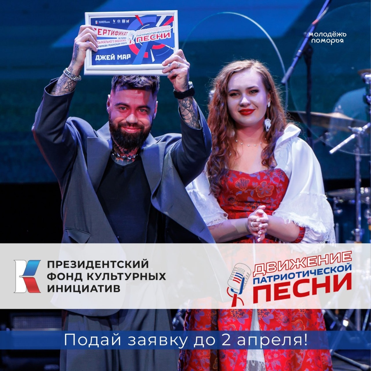 Участвуй в конкурсе «Движение патриотической песни» 🎶 Что нужно знать: 🟣 Для молодых авторов и исполнителей (18–35 лет) 🟣 Тематика: Россия, её культура, люди, ценности 🟣 Финал в Москве — выступления 10 финалистов на большой сцене 🟣 Главный приз: съёмка клипа и продвижение на музыкальных платформах для 5 победителей Подача заявок — до 2 апреля 2026 г. на сайте: patriot-pesnya.ru/ Проект реализуется при поддержке Президентского фонда культурных инициатив. #молод29 #Команда29 #нацпроекты #молодёжьидети #ПФКИ #патриотическаяпесня