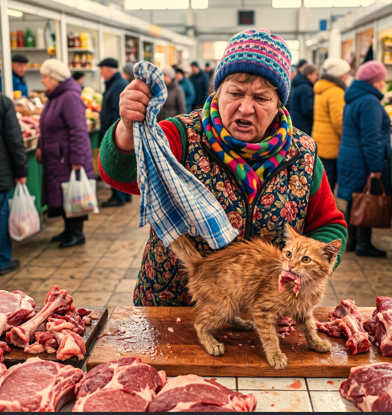 Он не выпрыгнул из засады. Просто из пыльной тени между ящиками материализовался котенок. Рыжий, невероятно тощий, с надорванным ухом и клочковатой жесткой шерстью. В его желтых, немигающих глазах читался только холодный расчет существа, привыкшего выживать на бетоне. Он дождался, пока Тамара отвернется к весам, метнулся к краю стола, вцепился мелкими зубами в тяжелую ленту жирной обрези и с силой потянул на себя.